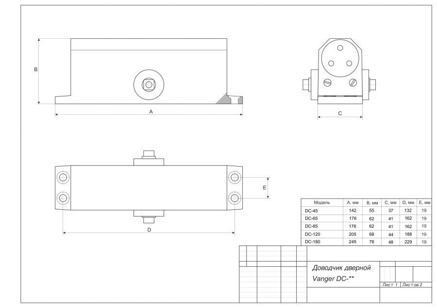 Доводчик дверной Vanger DC-120-W, цены