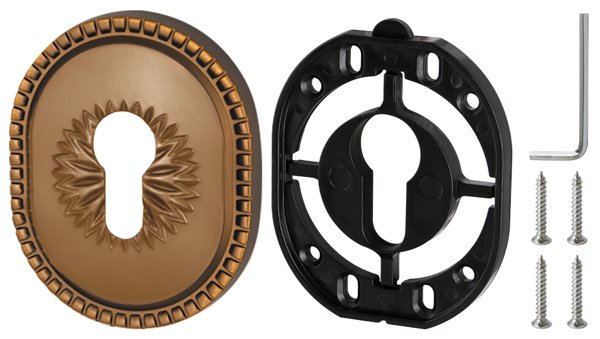 Декоративная накладка цилиндр ET-DEC CL (ATC Protector 1) рекомендована для установки на цилиндровый механизм в входные металлические двери. Выполнена в классическом стиле и прекрасно сочетается с броненакладками ET/ATC Protector Classic и ручками серии Classic. Изготовлена из Zamak - покрытия, отличающегося высочайшей стойкостью к воздействию внешних факторов. Это легкий в обработке материал, позволяющий получать эргономичные модели с идеально ровным покрытием. В комплектацию входит декоративная накладка (1шт.), нейлоновое основание для скрытого крепления, саморезы и шестигранный ключ.
