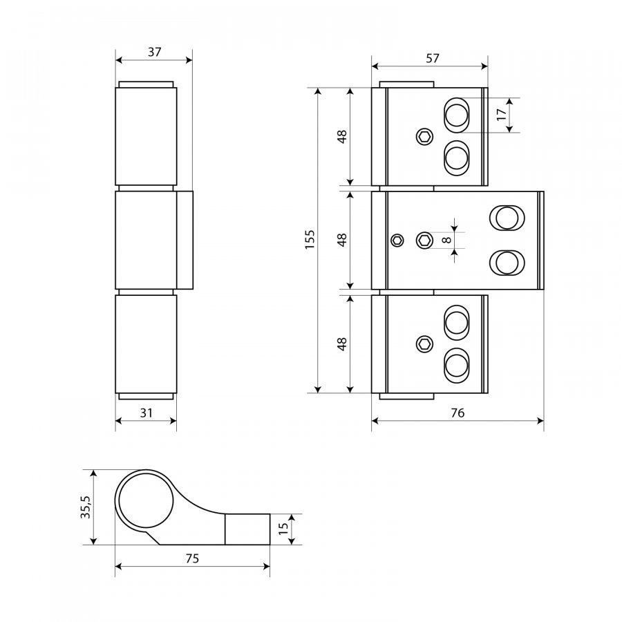 БУЛАТ ПН-153,5х96.8017 коричн.,1 подшип., 3-х секц. петля дверная для алюм. дверей,(U3-P1A), цены
