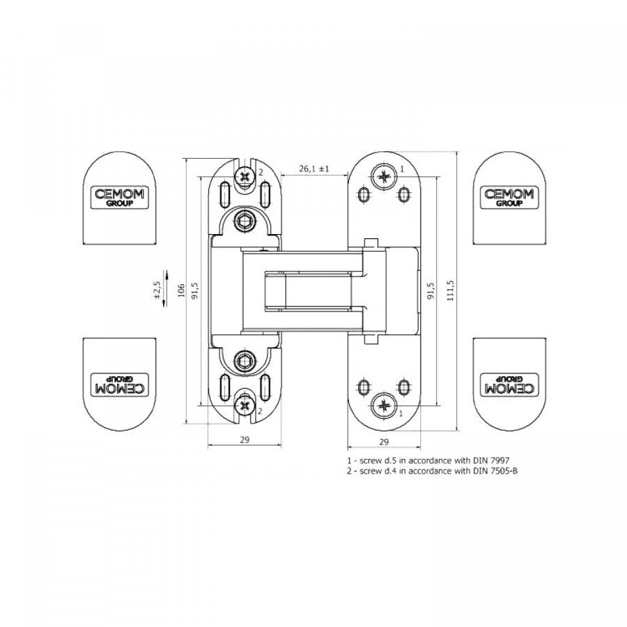 Дверная петля CEMOM ESTETIC 60/A 3D скрытая, матовый хром, цены
