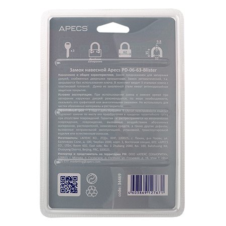Замок навесной Apecs PD-06-63-Blister, цены